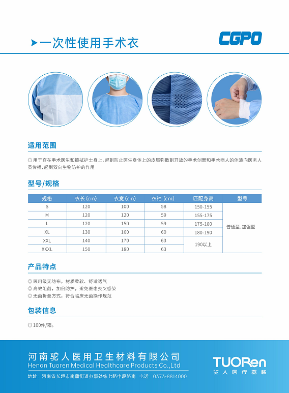 - 商品俗称:CGPO一次性使用手术衣